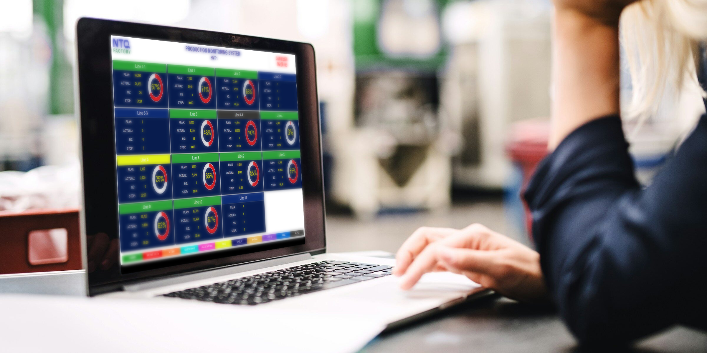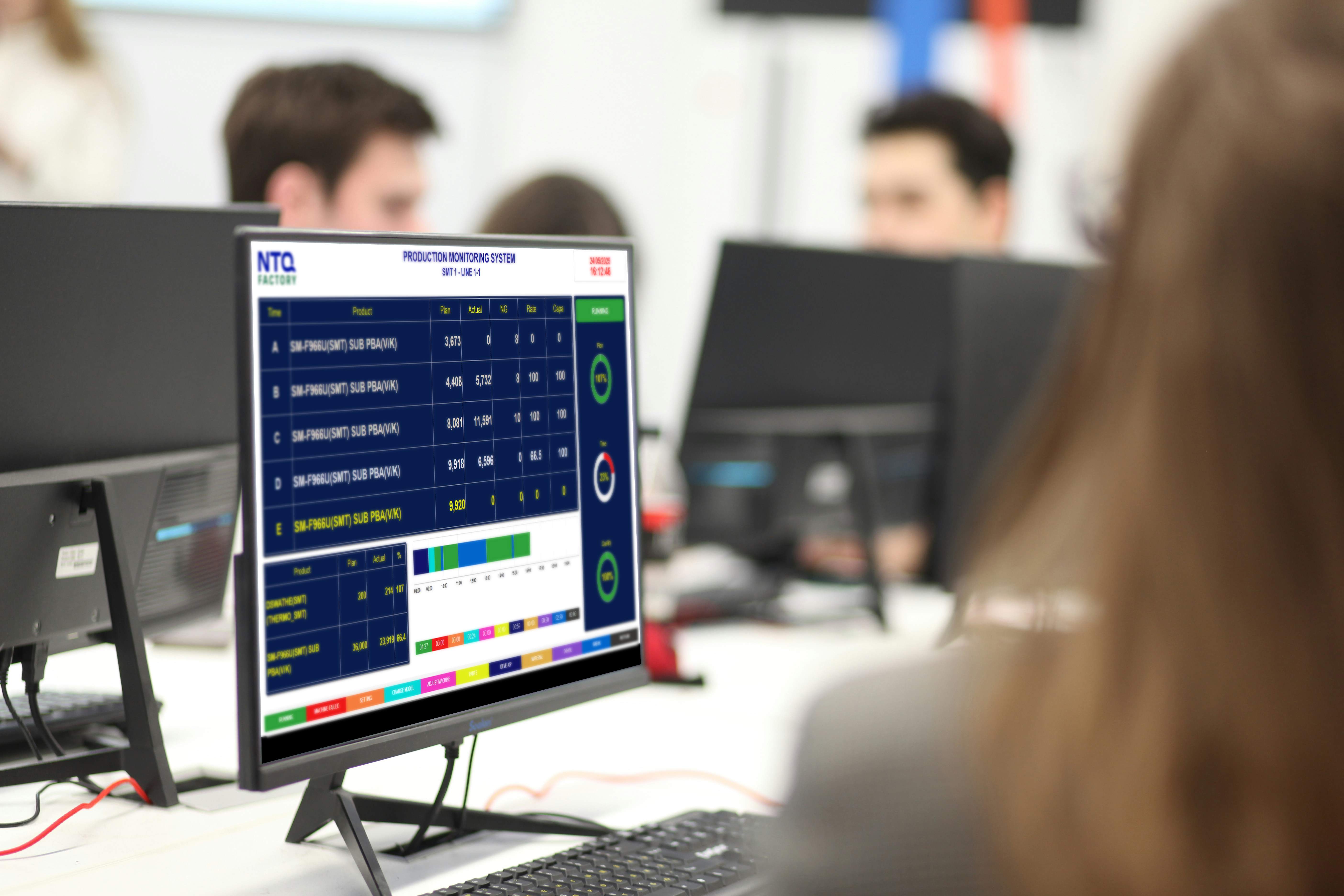 Monitor real-time production process, KPI progression tracking, completion rate and machine efficiency.